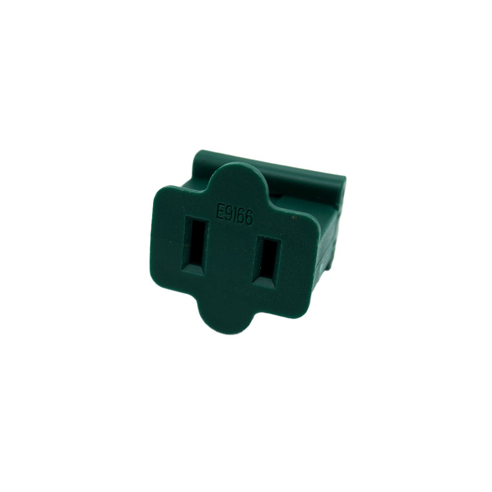 The Female Slide Plug is a must-have when building your own Christmas light stringers or extension cords. Designed to work exclusively with SPT1 wire, this green, 2-prong polarized plug creates a secure and weather-resistant connection for end-of-line or inline power.
